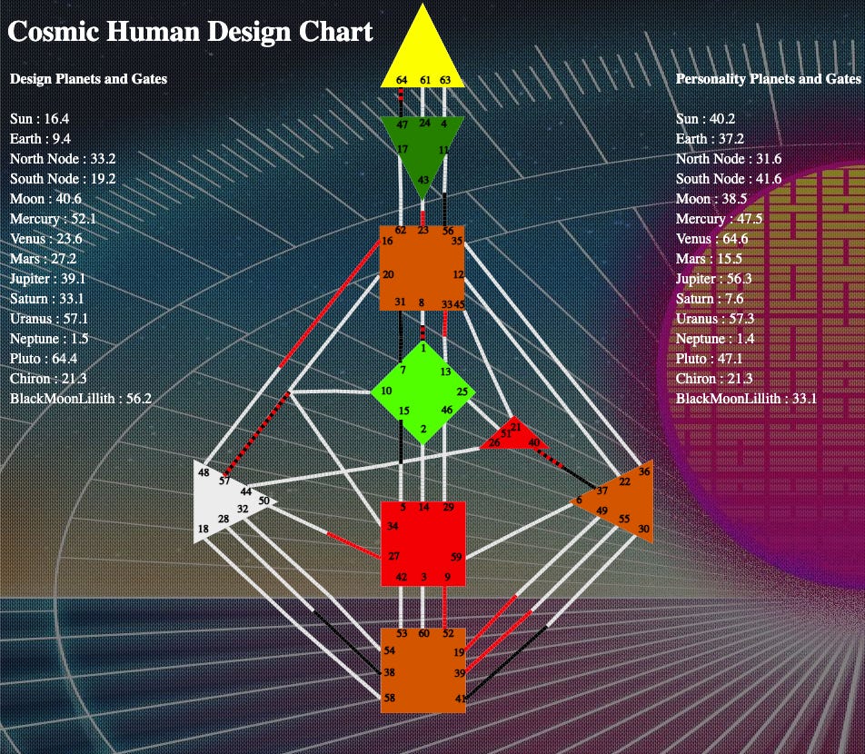 Ik herinner me nog die periode dat Cosmic Human Design opeens in het leven werd geroepen. Dat was eind 2020, meen ik me te herinneren. Iemand was op het idee gekomen om, in plaats van de Tropische astrologie als ingangspunt te nemen om body graphs te berekenen, om de True Sidereal astrologie te nemen. Hij gebruikte daarvoor de True Sidereal zodiacpunten waarop hij het hexagramwiel aanhaakte en kwam zo met nieuwe berekeningen voor een body graph.